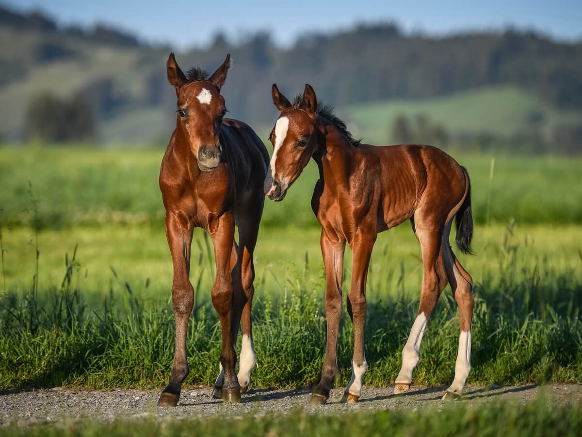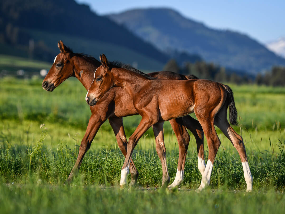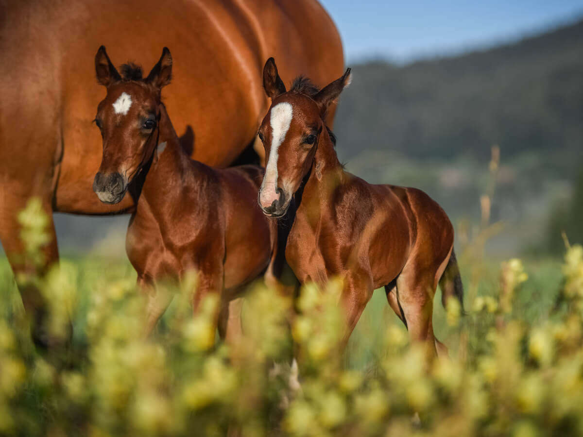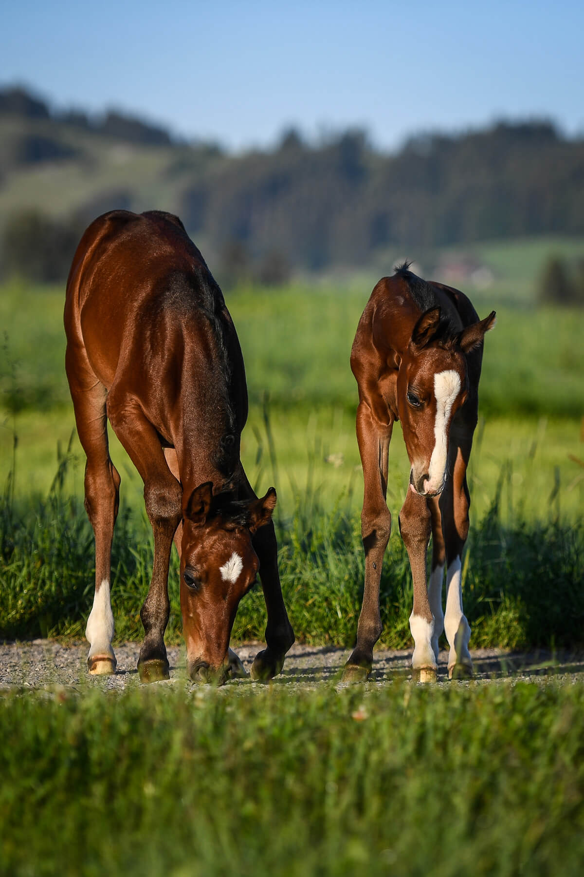 Unsere Stute Cherie hat uns unerwarted zwei gesunde Stutfohlen geschenkt. Alle 3 sind wohlauf und versüssen dem ganzen Stall den Alltag.