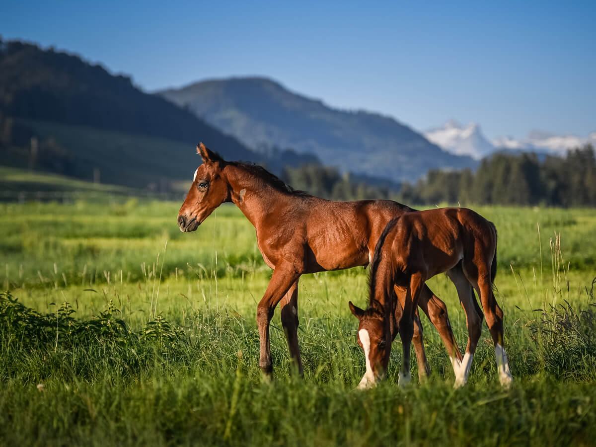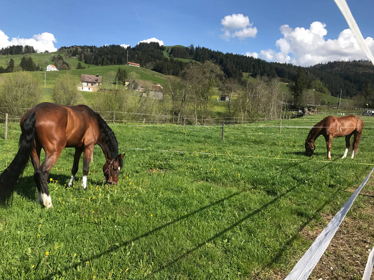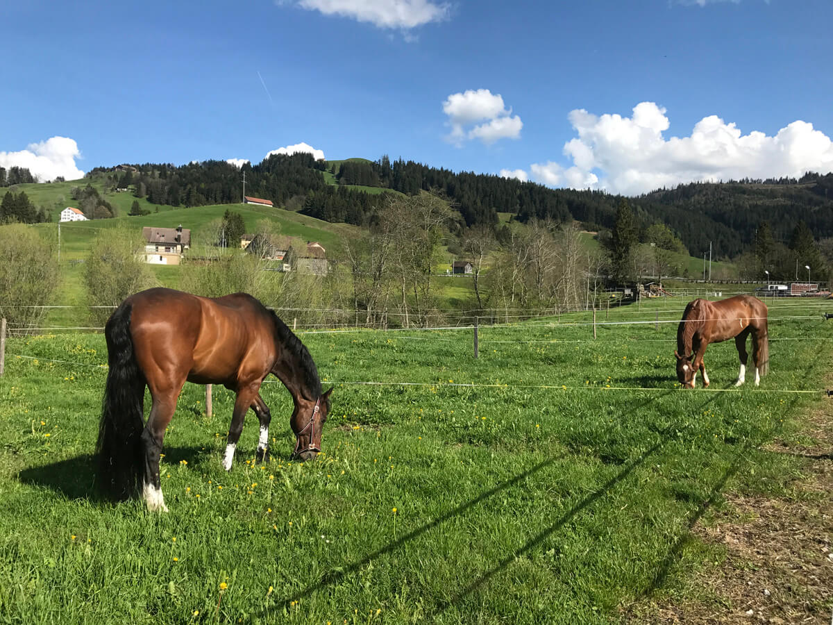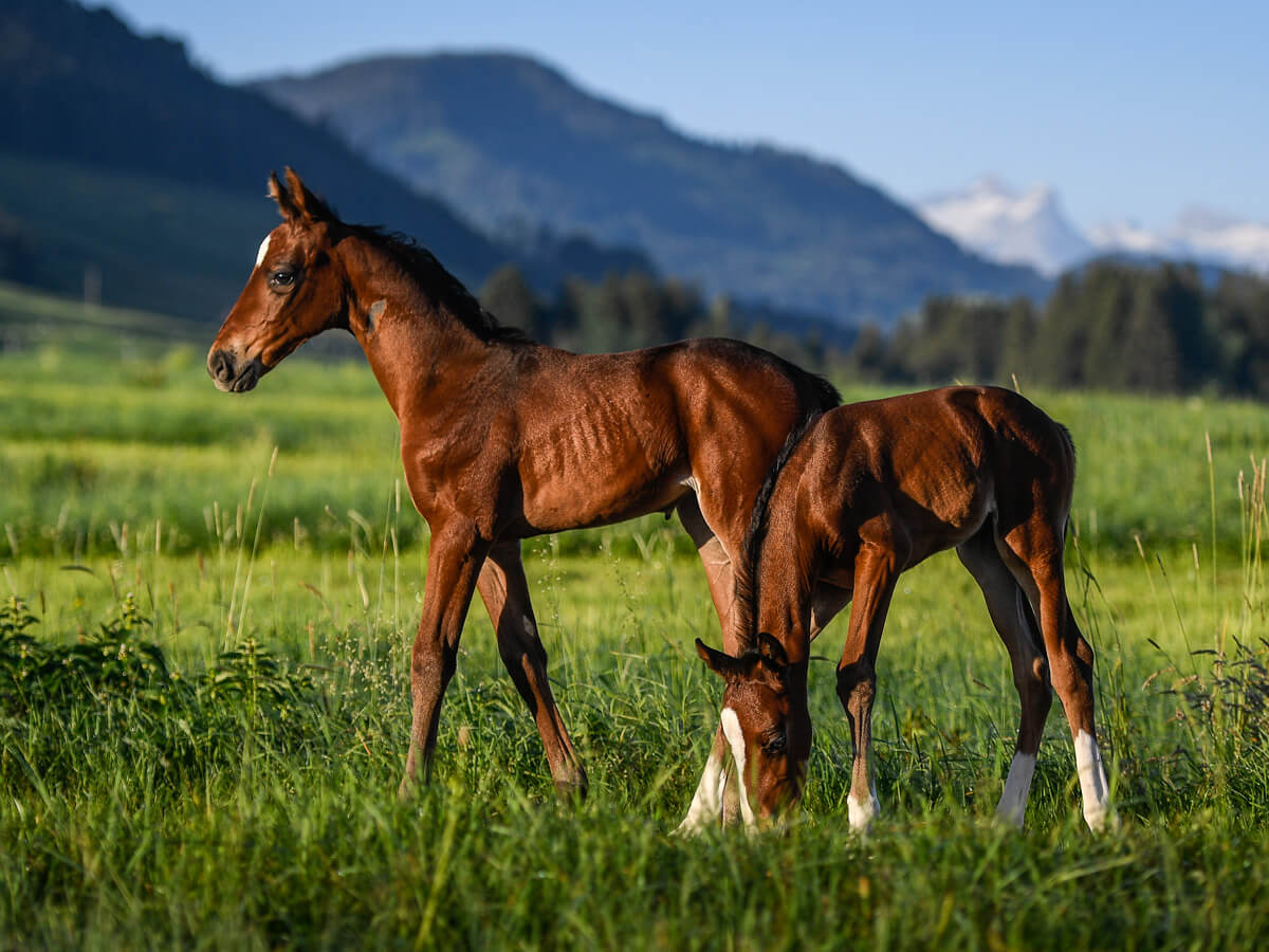 Unsere Stute Cherie hat uns unerwarted zwei gesunde Stutfohlen geschenkt. Alle 3 sind wohlauf und versüssen dem ganzen Stall den Alltag.