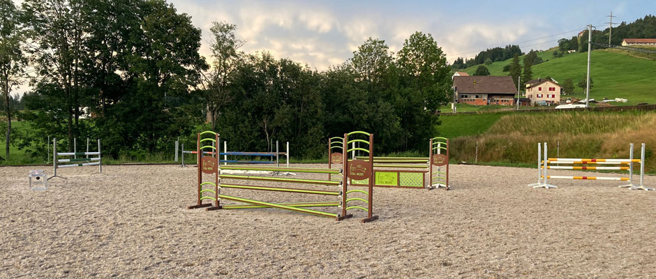 Grosser Aussenplatz mit super Boden. Komplett Renovation des Reitplatzes 2022.